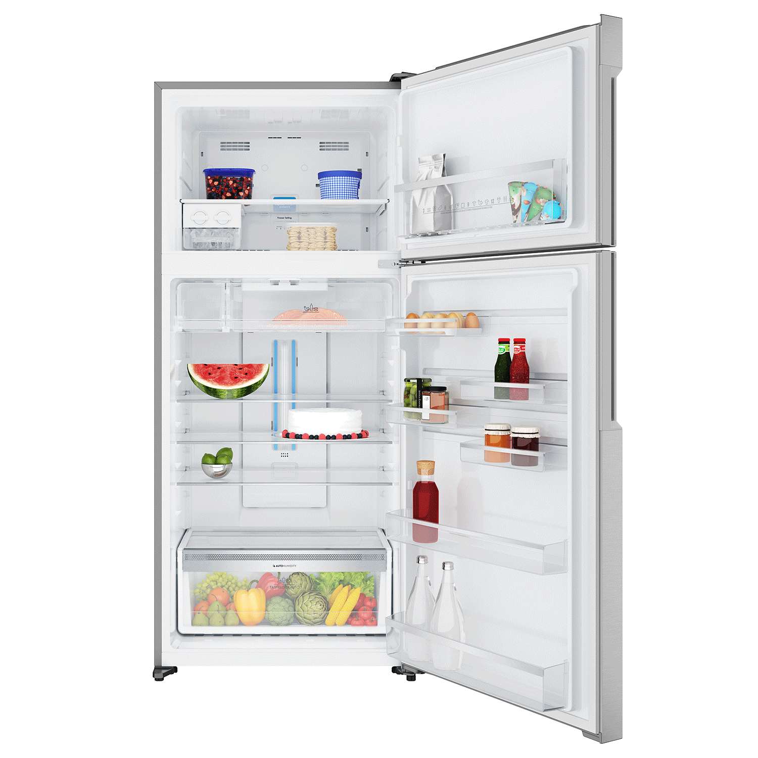 - CUSTOMIZE YOUR FRIDGE EFFORTLESSLY: With FlexStor function, you can arrange your refrigerator as per your needs with adjustable door bins and shelves. This double door refrigerator comes with different-sized compartments that effortlessly accommodate items, whether they are big or small.